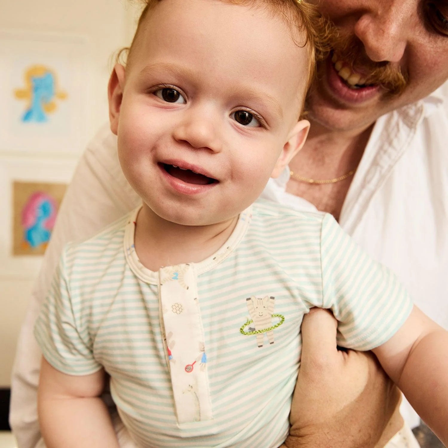 our henley top + short set is an everyday ensemble you'll reach for over and over again. Soft as can be, t-shirt has magnetic closures that make it easy to pull over the head, and the shorts are super comfy with an elastic waist and pockets. Each piece is made of our signature, long-lasting TENCEL™ modal.