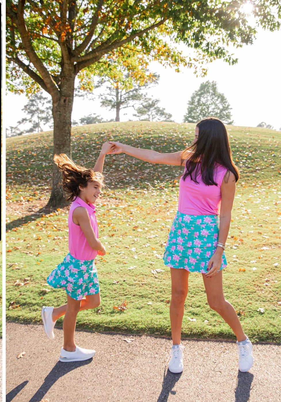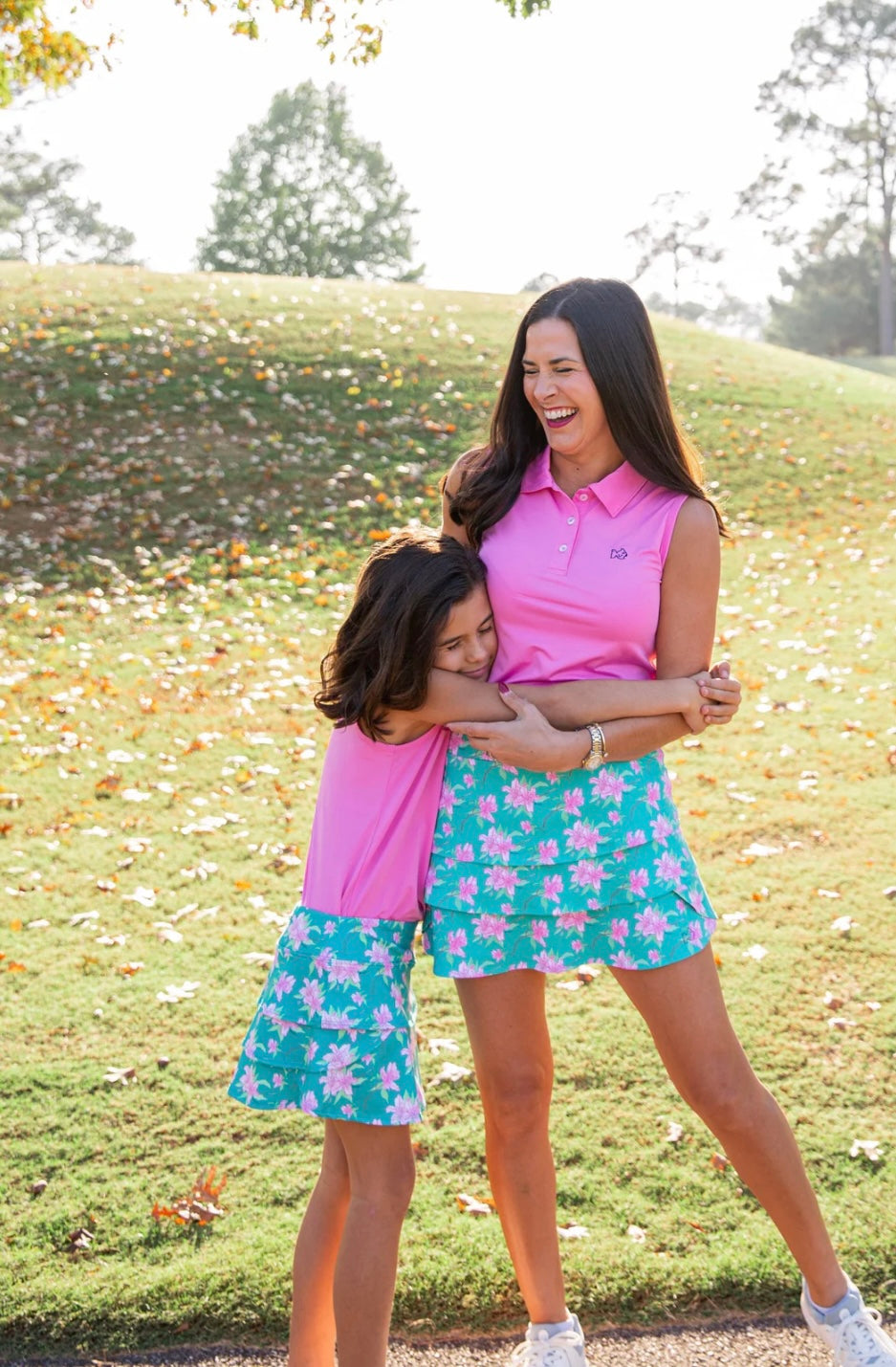 PRODOH Womens Sleeveless Pro Performance Polo Shirt in Fuchsia Pink will trump all your other polos with its slender silhouette and longer length. Tuck or untuck, the choice is yours! This style is part of our Mommy and Me Collection so be sure grab one for the mini me in your life! Pair with our womens' azalea print swing skort for a Master's Ready Weekend or moments on your local course or court! Available in sizes XS to XL in our UPF 50 fabric. Share your captured #PRODOHmoments with us on Instagram @prodohkids.
