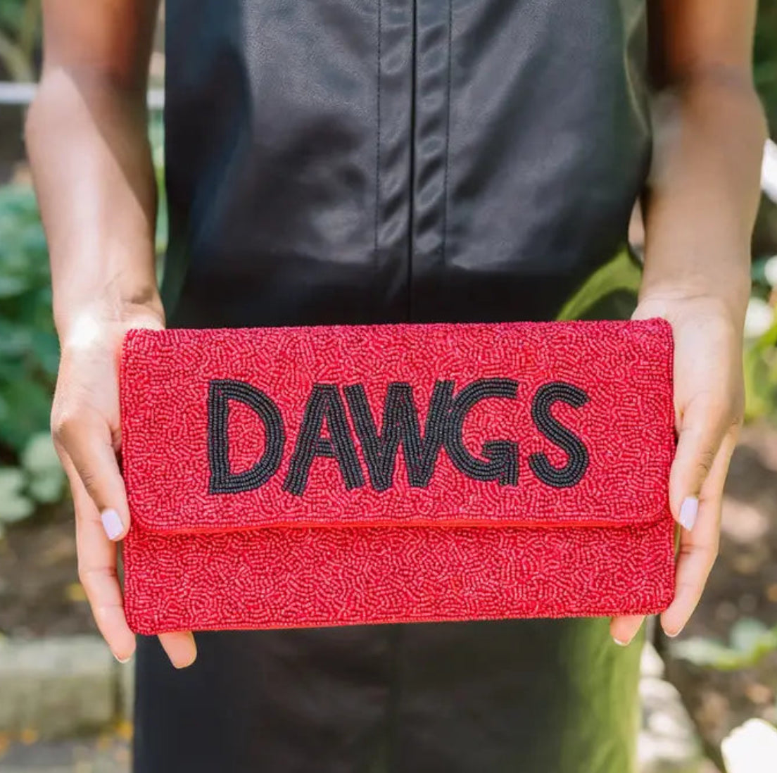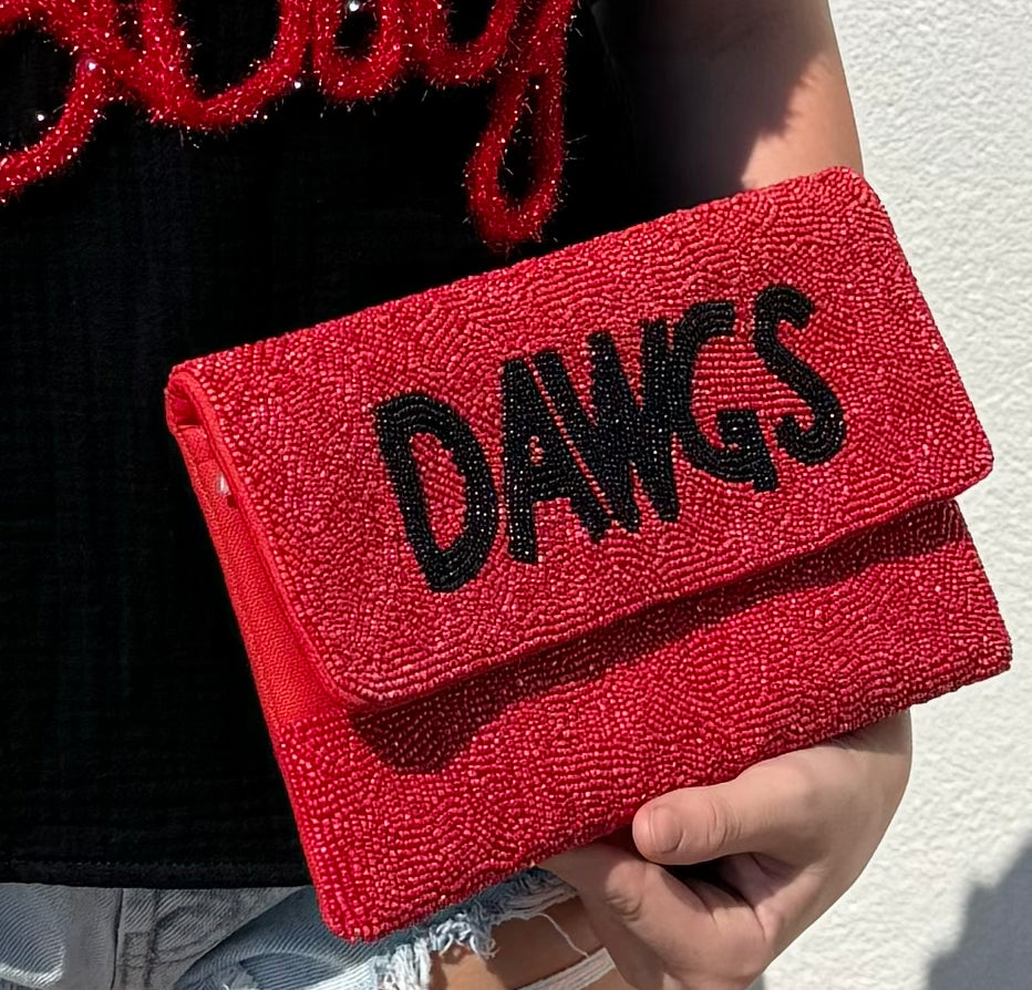 Perfect Gameday Bag! Beaded Clutch Collection by Lisi Lerch. Foldover clutch with styling reminiscent of Charleston charm and resort relaxation. With an optional chain for crossbody styling, keeps your hands free for coffee or cocktails.