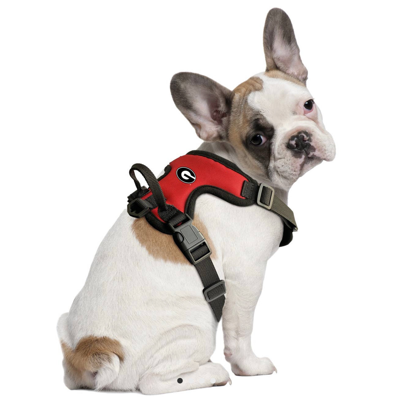Two adjustable front clips make it easy to put on your pet, and the added back handle will help keep your pup extra secure. A team logo and woven league patch accessorize the harness and show off your pets fan status. Available in sizes X-Small through X-Large.