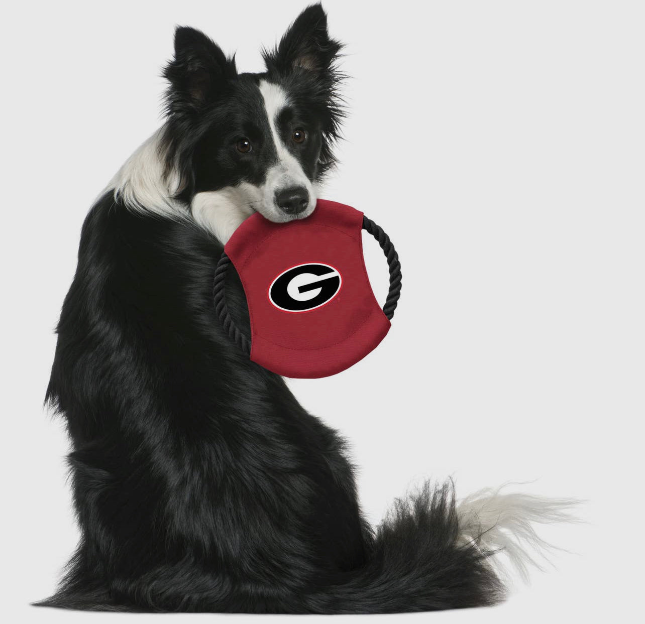 The Team Flying Disc Pet Toy is a great way for you and your pooch to get exercise. Whether it's the tailgate, the backyard, or the park, your pets will find this flying disc pet toy entertaining for hours of play!