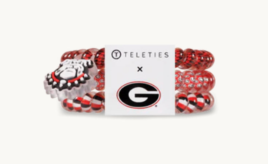 Hold your hair and enhance your style with the University of Georgia TELETIES. The strong grip, no rip hair tie that doubles as a bracelet. Strong, pretty and stylish, TELETIES are designed to withstand everyday demands while taking your look to the next level. Go Dawgs!