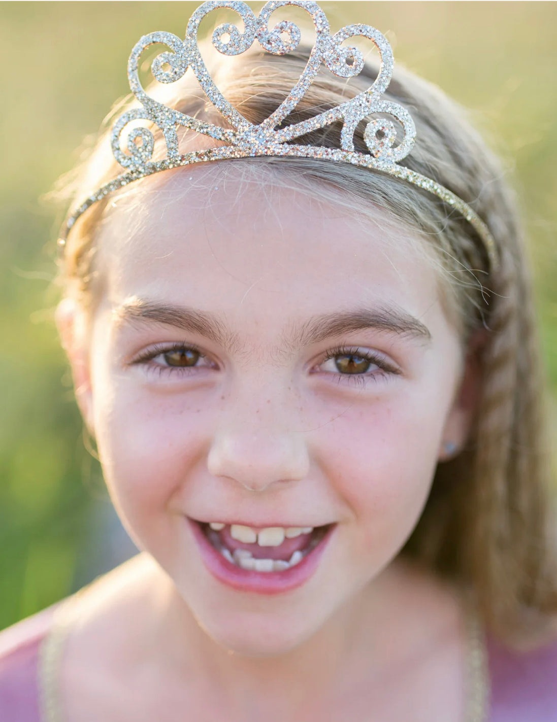 A classic princess problem, what tiara goes with what outfit? Our classically designed Princess Glitter Tiara is available in 2 classic colours that will make matching a breeze. A beautifully crafted metal base with intricate detail is finished off with a generous spray of glitter and sparkles, making this tiara the perfect princess accessory.
