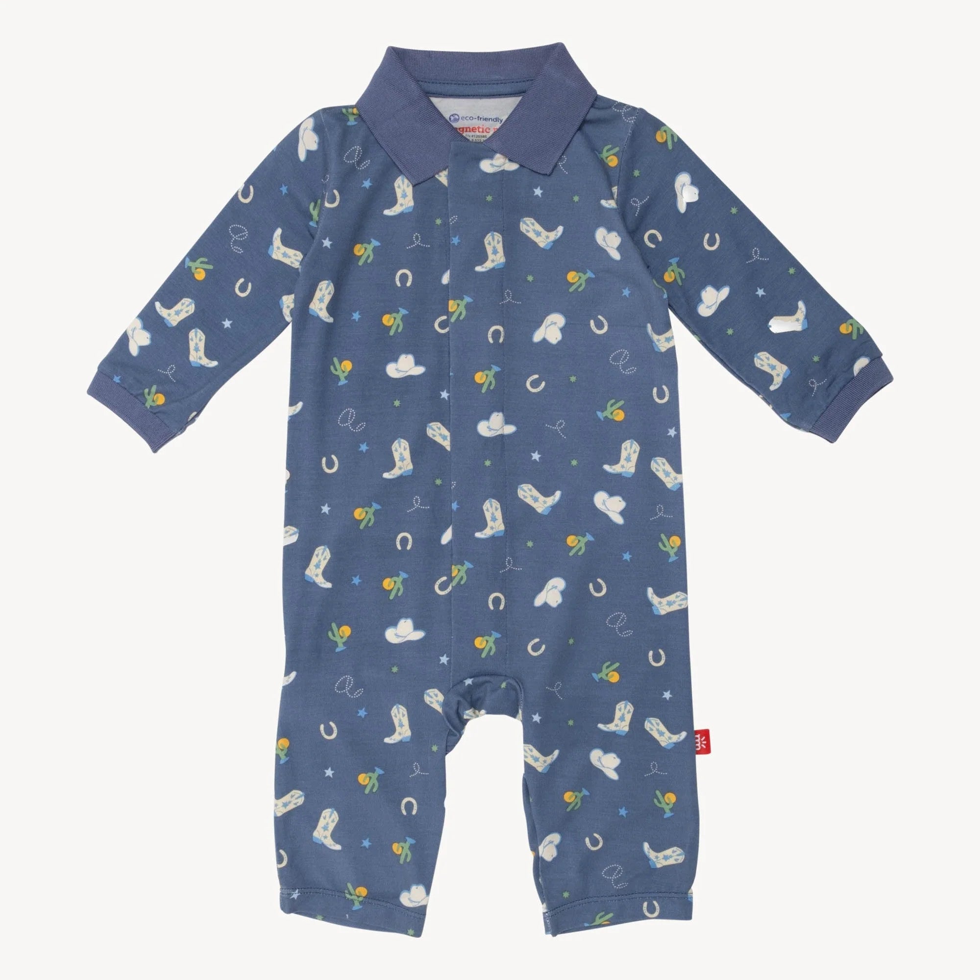 dress the part in our magnetic polo coverall, a snuggly one-piece delicately crafted from sustainably sourced TENCEL™ modal. it's just like our footie, but without the foot coverings and with the addition of a polo collar—for a dressier, put-together look. quick and quiet, magnetic closures line the front for a no-fuss solution to dressing and changes.