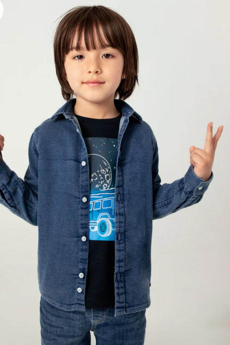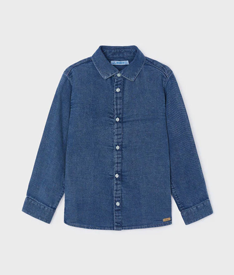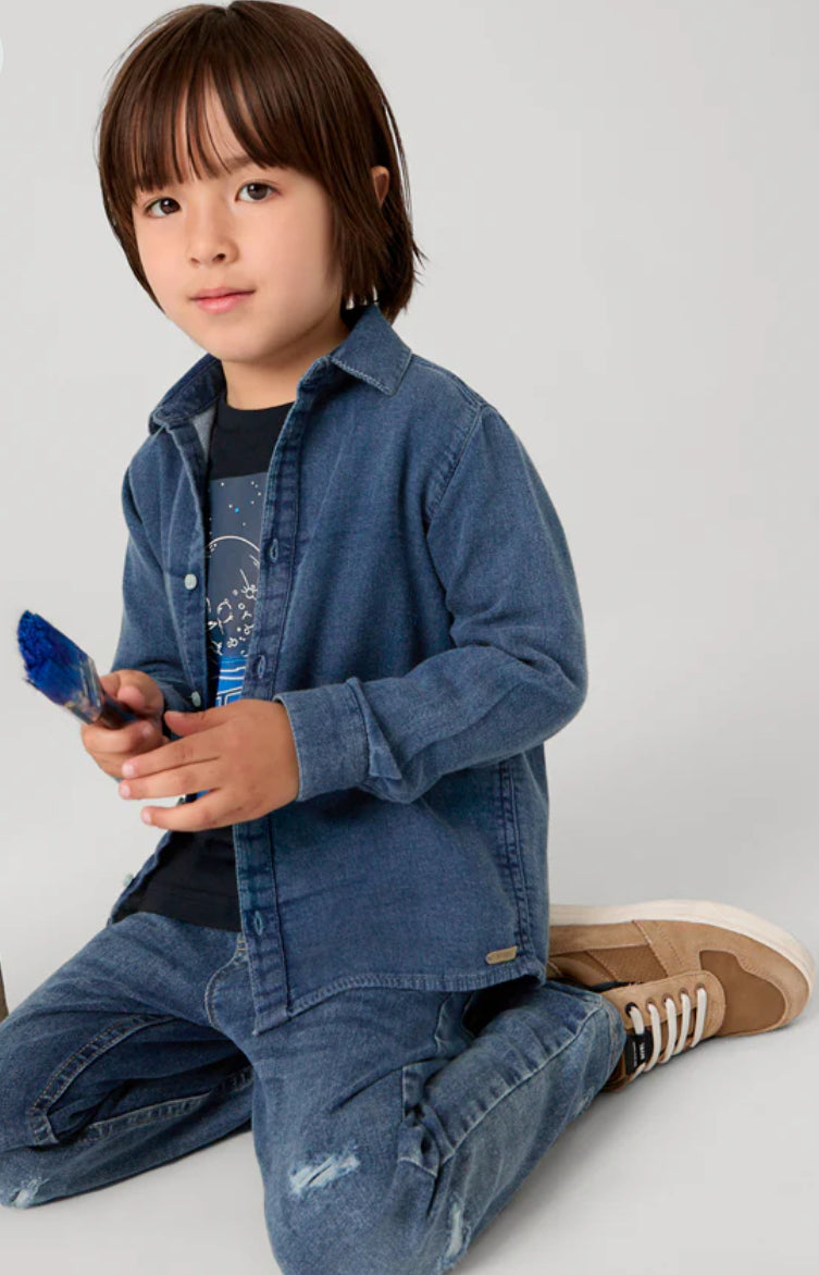 This 4112 Mayoral Denim Style Shirt offers a soft and comfortable tencel type denim fabric, with a full button front and button cuffs. Perfect for a casual yet stylish look, wear it open over a t-shirt for a layered ensemble.