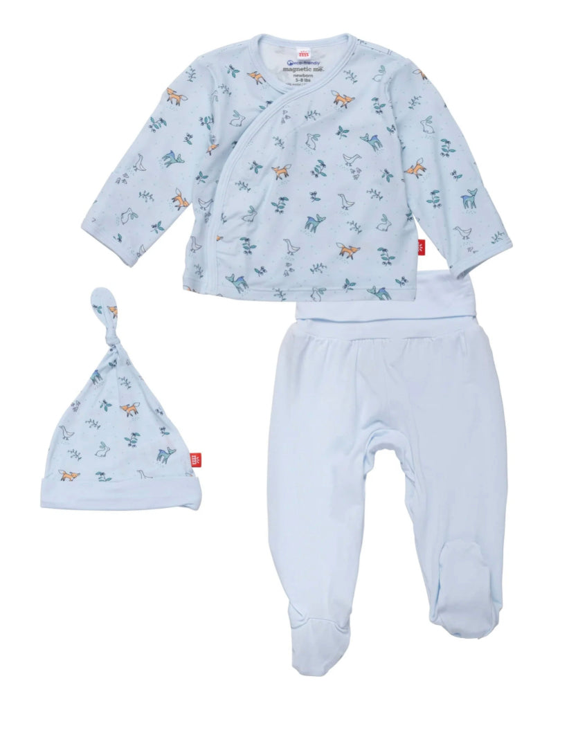 welcome baby in the cutest, comfiest take me home kimono set. the kimono top is designed to be gentle on healing belly buttons with magnetic closures that are great for fast, fool-proof changes, and the entire set is made of softer-than-soft TENCEL™M modal. pack it in your hospital bag as a coming-home ensemble and then use it for the weeks that follow.