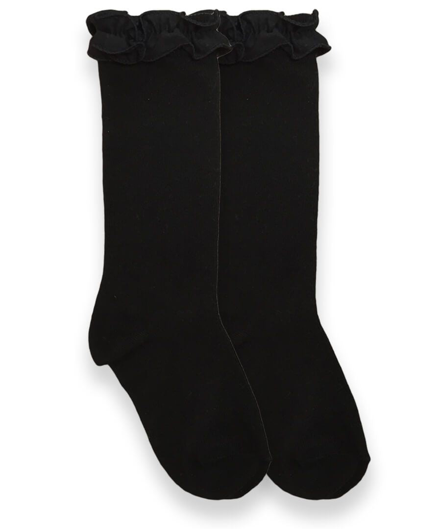 Dress up any outfit with these girls fun and cute ruffle knee high socks! Knit with soft cotton for extra comfort. Wide range of colors make these knee highs ideal for everyday, school, holidays, play, and more. Pair with cute boots, dress shoes, Mary janes, dresses, shorts, skorts, rompers, or jumpers for a cute look. These knee high socks also make a great accessory for Halloween costumes.