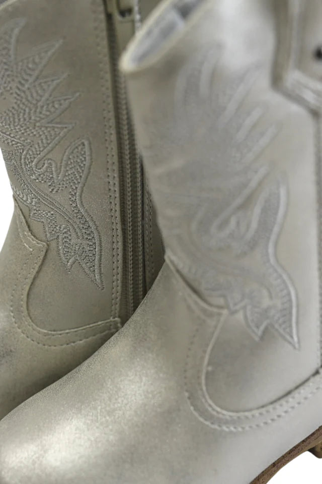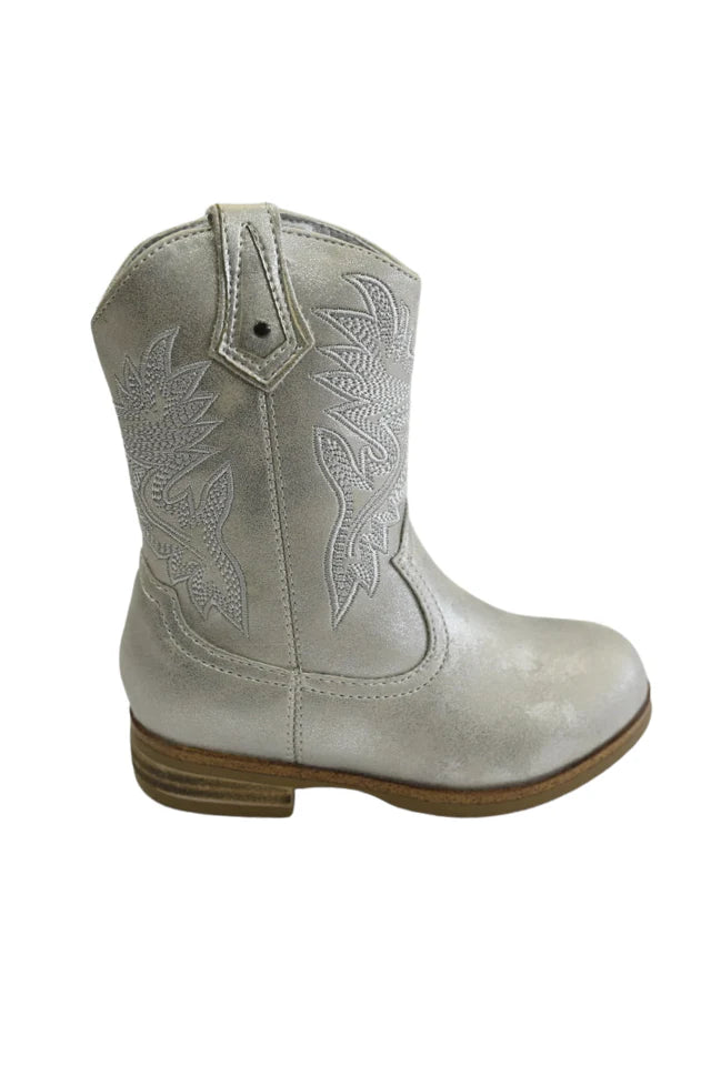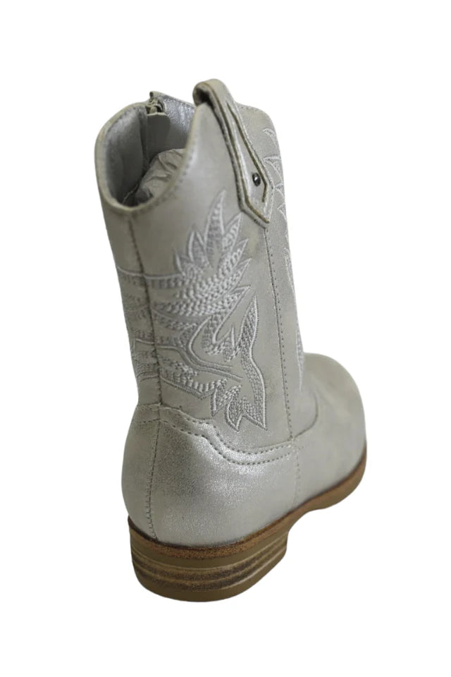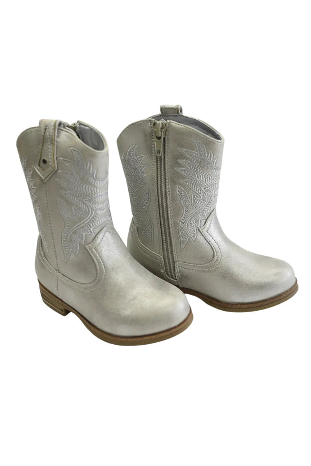 These dazzling boots are perfect for little cowgirls who love to shine. The striking silver finish adds a touch of sparkle, while the western-inspired design ensures they’re ready for any adventure, from rodeos to dance parties. Comfortable and eye-catching, these boots will have your little one strutting their stuff with confidence and flair. Saddle up and let the fun begin!