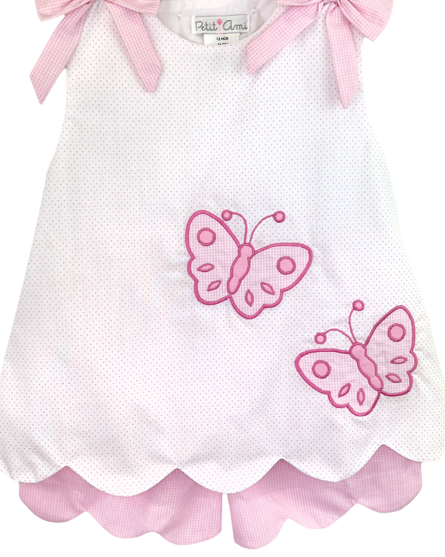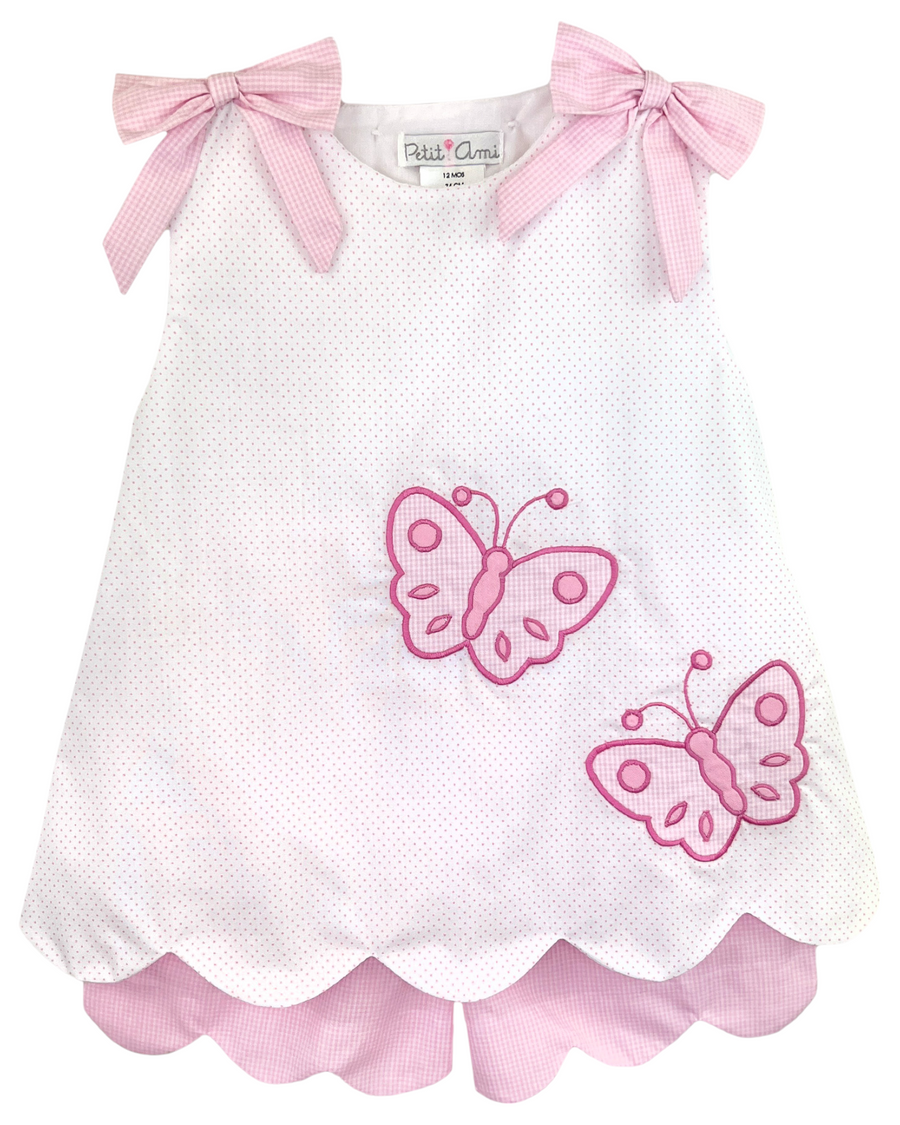 Discover a darling set that will make your little one feel as beautiful as a butterfly! Our Butterflies Applique Pink Dot Scallop Short Set features adorable butterfly appliques, bow accents on the shoulders, and a charming scalloped hem. Perfect for adding a touch of sweetness to any outfit.