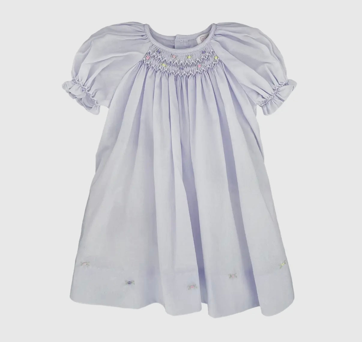 Featuring heirloom-quality handcrafted details like hand smocking and hand embroidered flowers at the hem, this dress is sure to become a treasured keepsake.