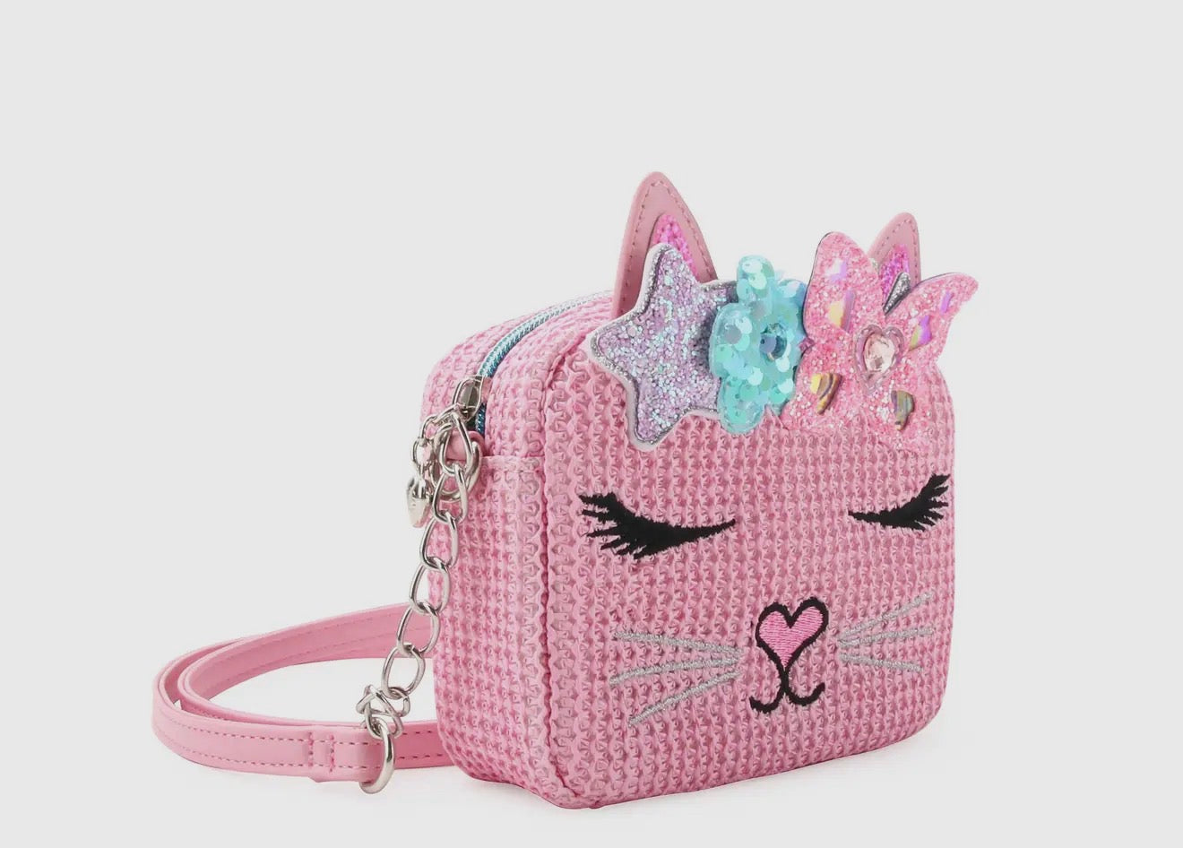 Miss Bella Kitty Cat Pink Straw Crossbody Bag