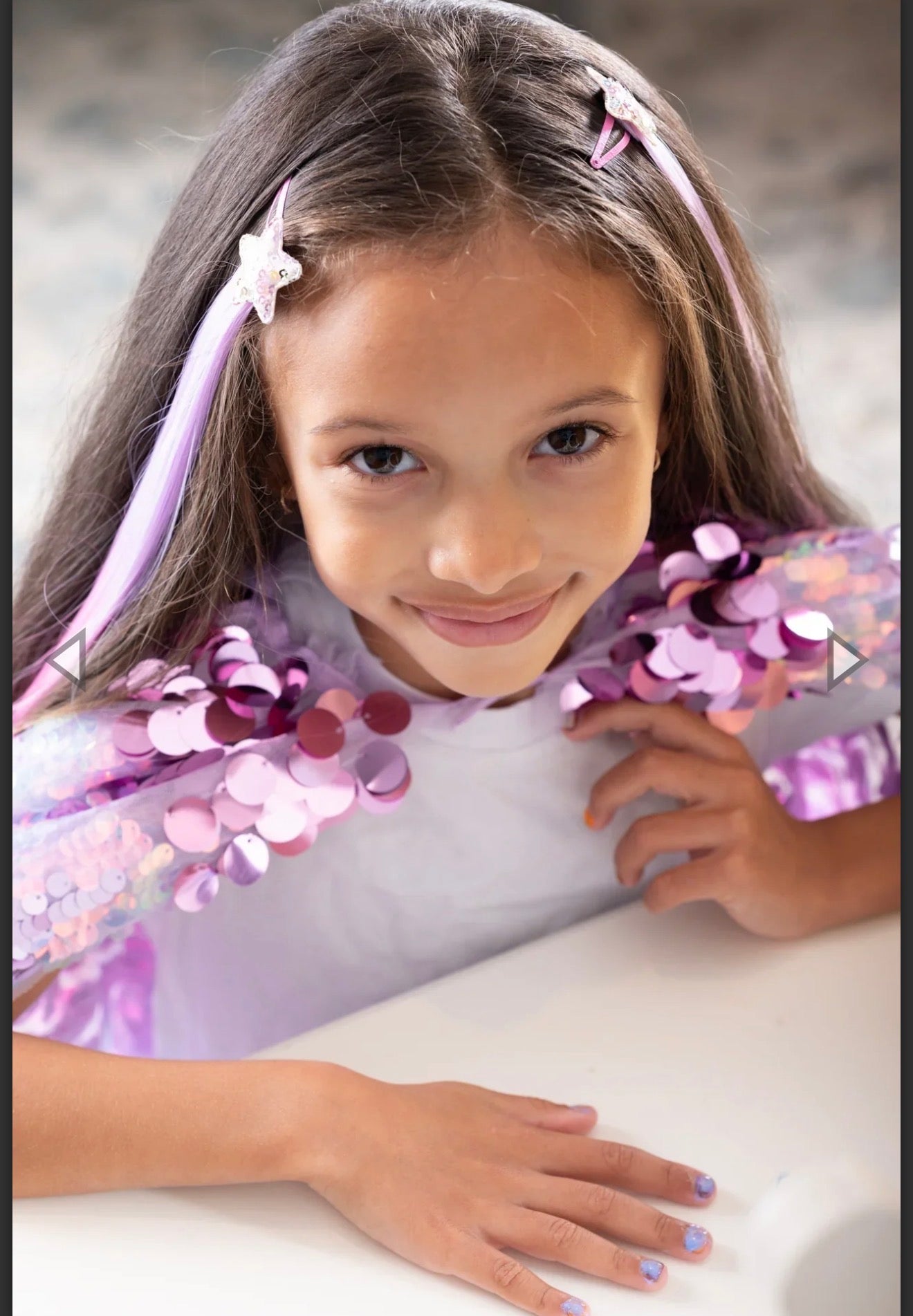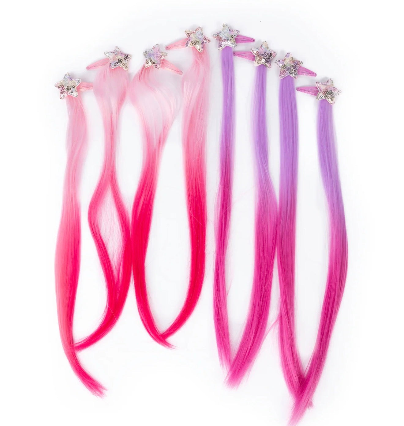 Each extension is finished with a sparkly sequin star hair clip at the top, adding extra shine and glamour. Whether you're getting ready for a special occasion or just want to spice up your everyday look, these clip-in extensions are an easy way to bring some Rodeo Drive-inspired style to your hair!
