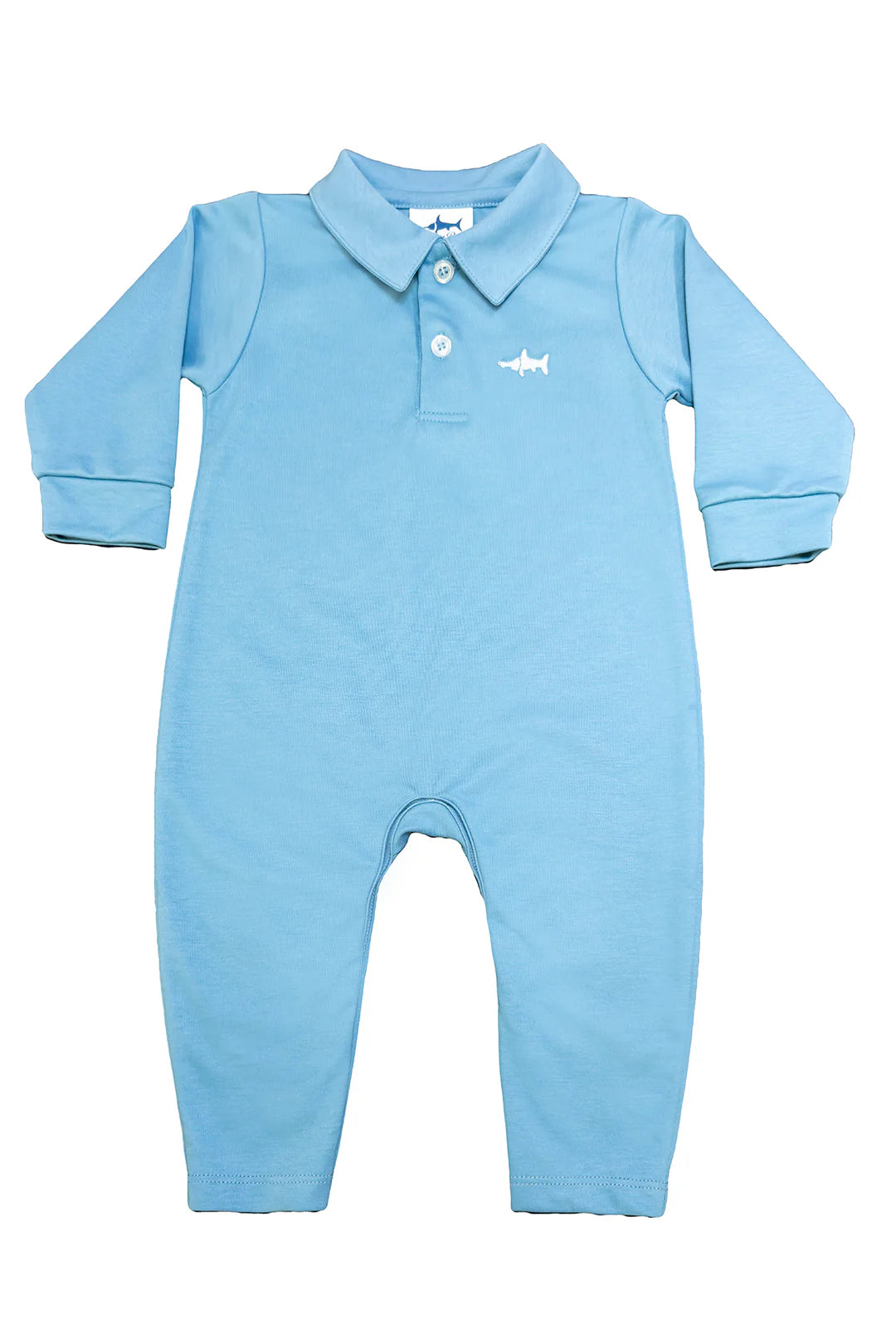The SBC Signature Polo Romper is made from 100% pima cotton. Our long sleeve romper boasts a charming collar and our signature marlin emblem on the left chest. Pima cotton is known for its unparalleled softness and luxury, perfect for baby's soft skin.